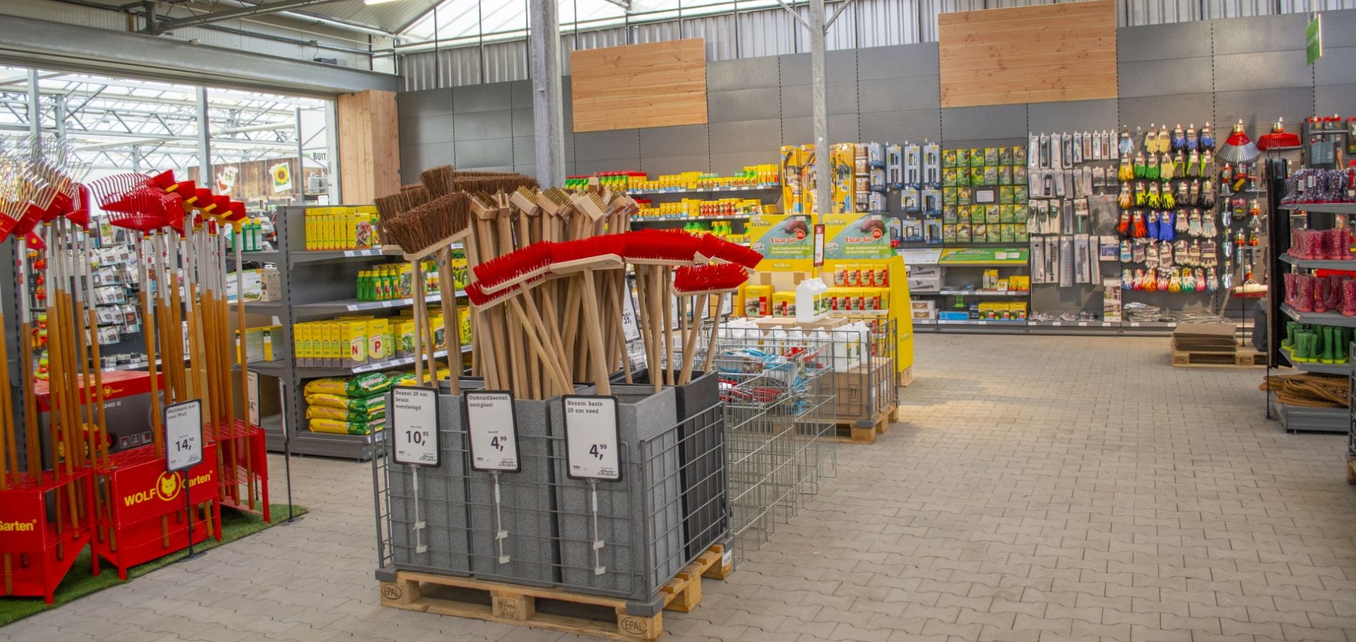We hebben zelfs een lijn met biologische meststoffen. Hebben de planten last van insecten of schimmels? Wij helpen u graag! U kunt altijd een foto of blaadje meenenen, zodat wij goed een juiste oplossing kunnen vinden voor het probleem. Als u ziektes meeneemt, neem dit dan altijd in een doorzichtig zakje mee, zo worden onze eigen planten niet ziek. Onze producten helpen uw planten om in topconditie te blijven. We hebben alles om uw tuin te bewateren. Van gieter tot tuinslang, van broes tot aan regenton. Ook hebben we autoreels (oprolsysteem met tuinslang) die zichzelf automatisch op kunnen rollen, in diverse lengtes. De tuinwinkel kunt u vinden naast onze dierenwinkel in de koude kas.