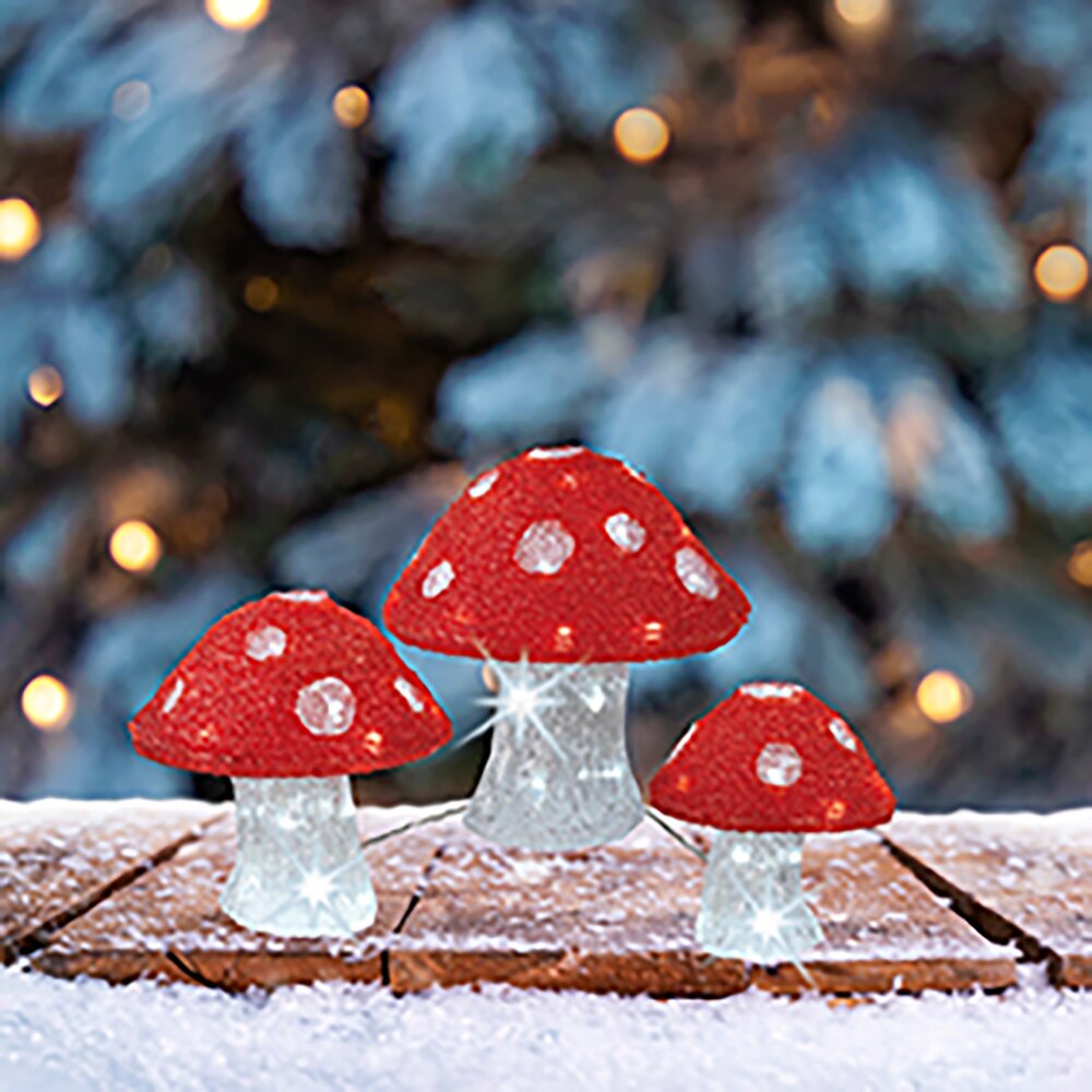 Paddenstoelen Acryl lights Rood / Wit 3 Stuks