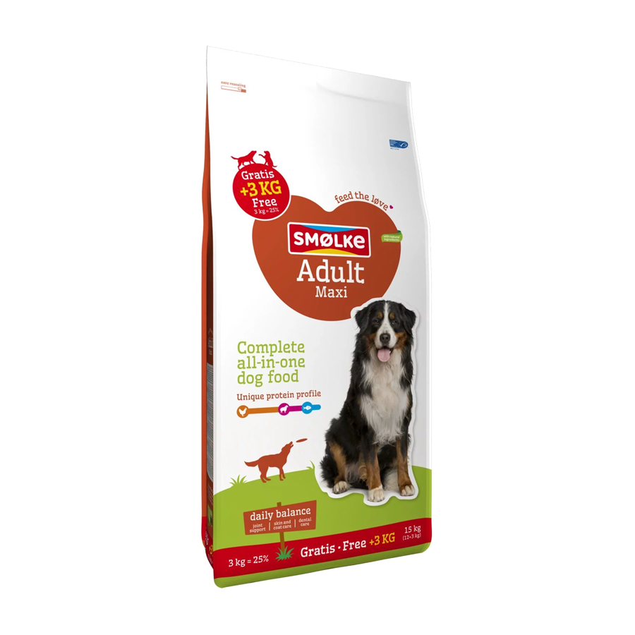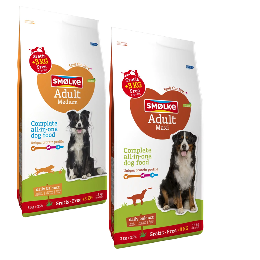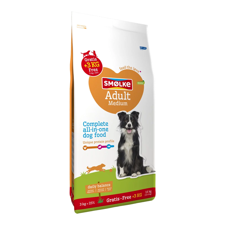 Smølke hondenvoer Adult bevat alles wat jouw hond nodig heeft om iedere dag in balans te zijn. Met een speciale mix van voedingsvezels is er veel aandacht voor darmgezondheid.
