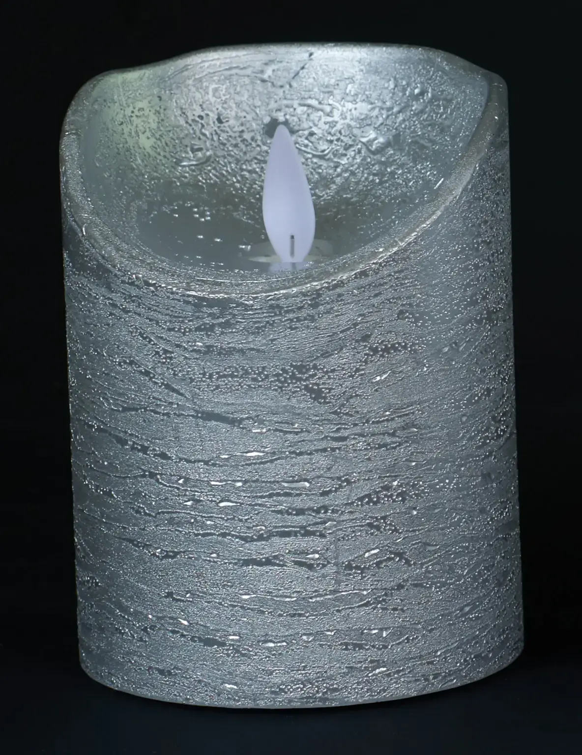 Kaars zilver 12,5 cm met bewegende vlam LED
