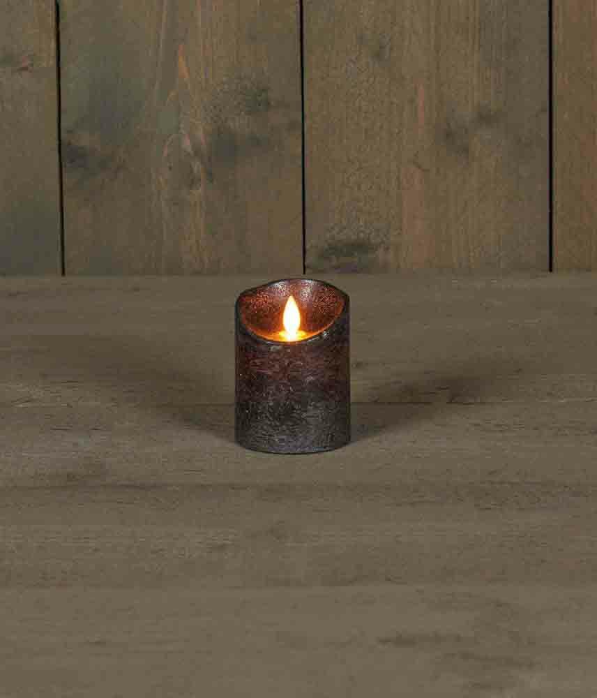 Wax stompkaars met bewegende vlam H10cm antraciet LED