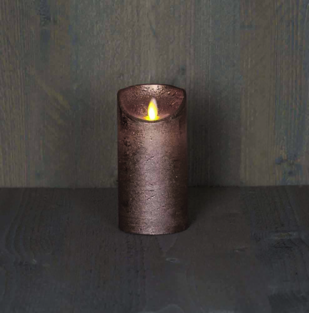 Wax stompkaars met bewegende vlam H15cm brons LED