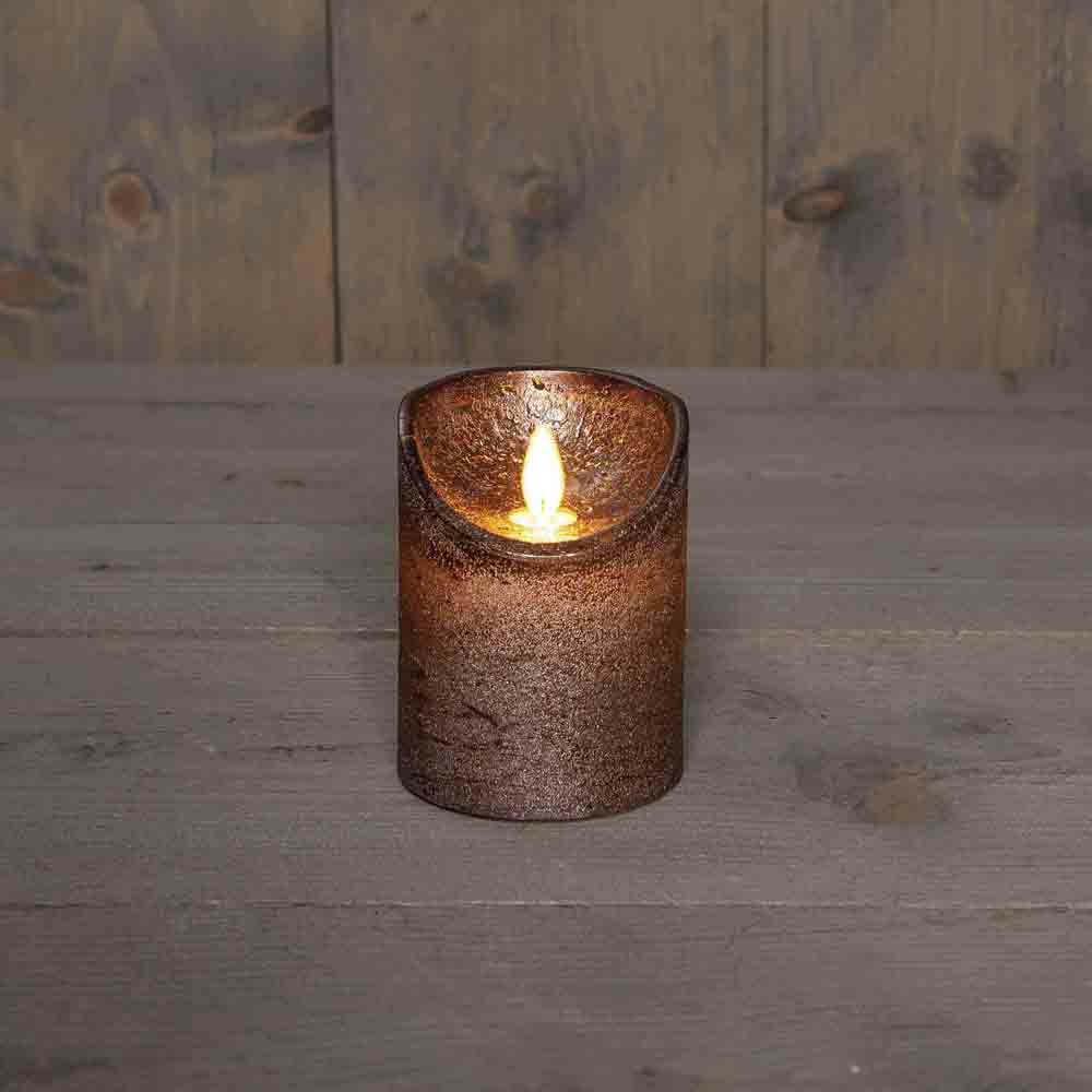 Wax stompkaars met bewegende vlam H10cm brons LED