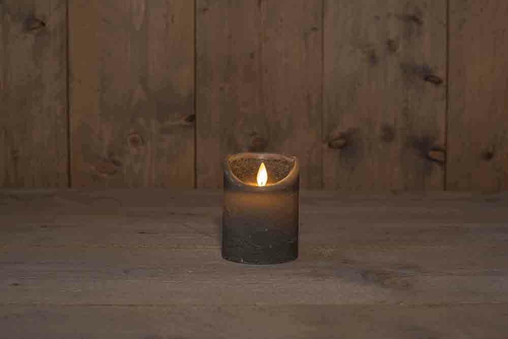 Wax stompkaars met bewegende vlam H10cm grijs LED