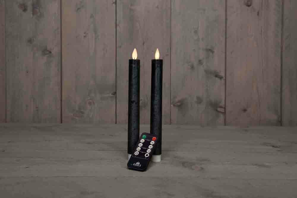 Wax dinerkaars met bewegende vlam H23cm antraciet 2st LED