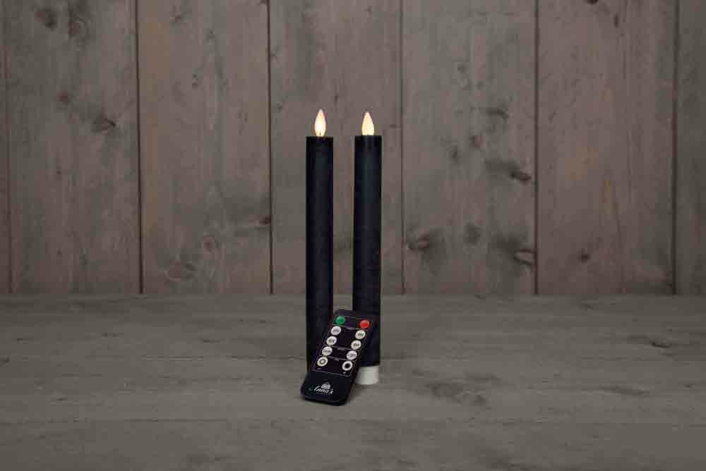 Wax dinerkaars met bewegende vlam H23cm zwart 2st LED