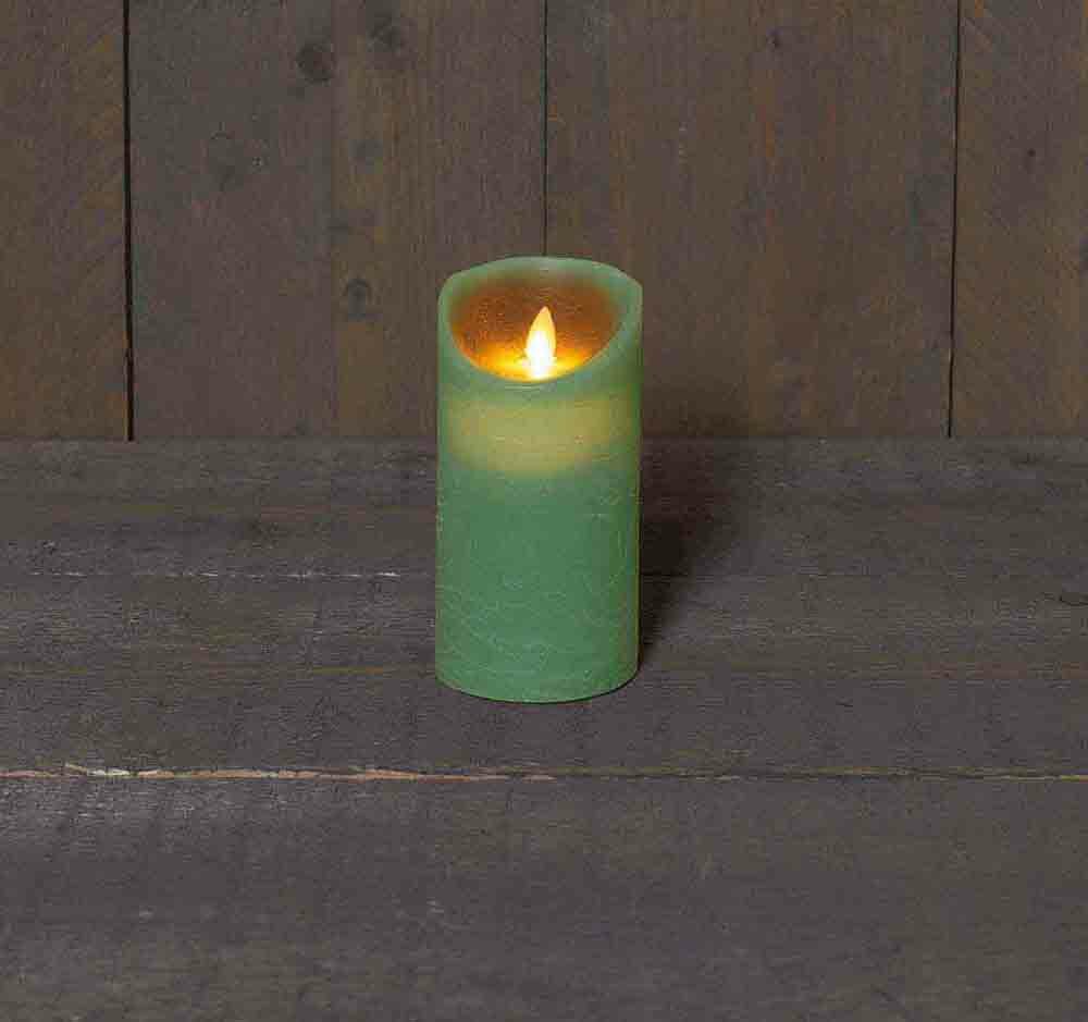 Wax stompkaars met bewegende vlam H15cm jade groen LED