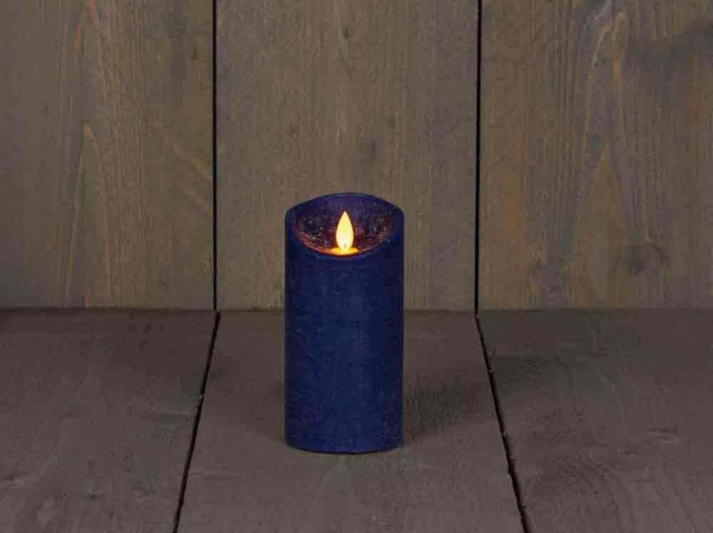Wax stompkaars met bewegende vlam H15cm antiek blauw LED