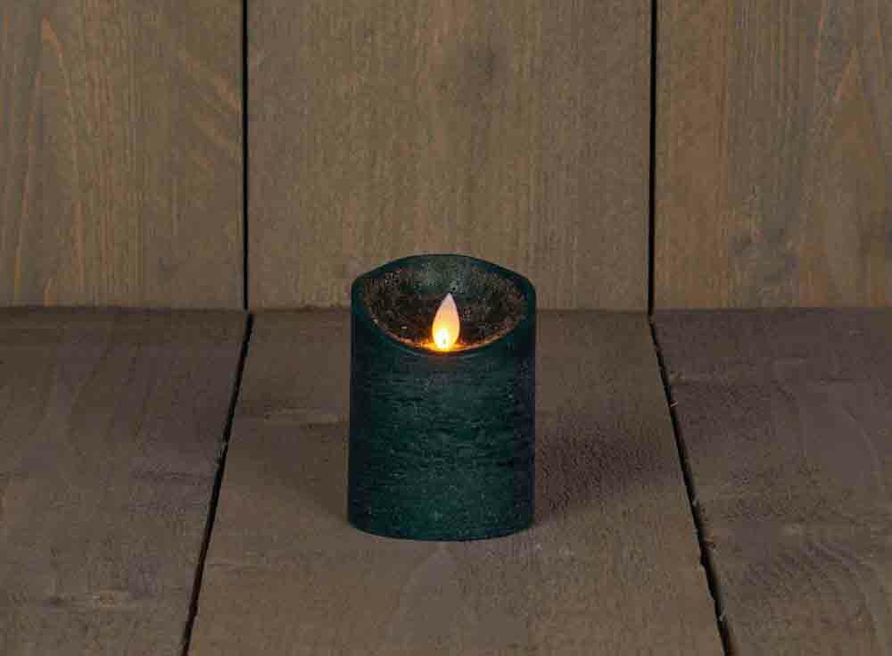 Wax stompkaars met bewegende vlam H10cm antiek groen LED