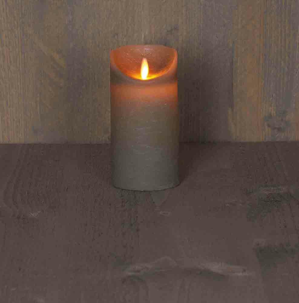 Wax stompkaars met bewegende vlam H15cm taupe LED