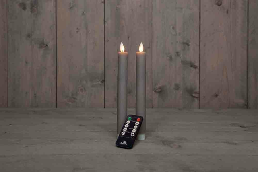 Wax dinerkaars met bewegende vlam H23cm taupe 2st LED