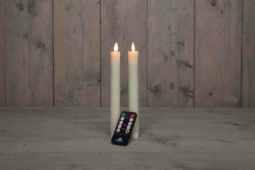 Wax dinerkaars met bewegende vlam H23cm ivoor 2st LED