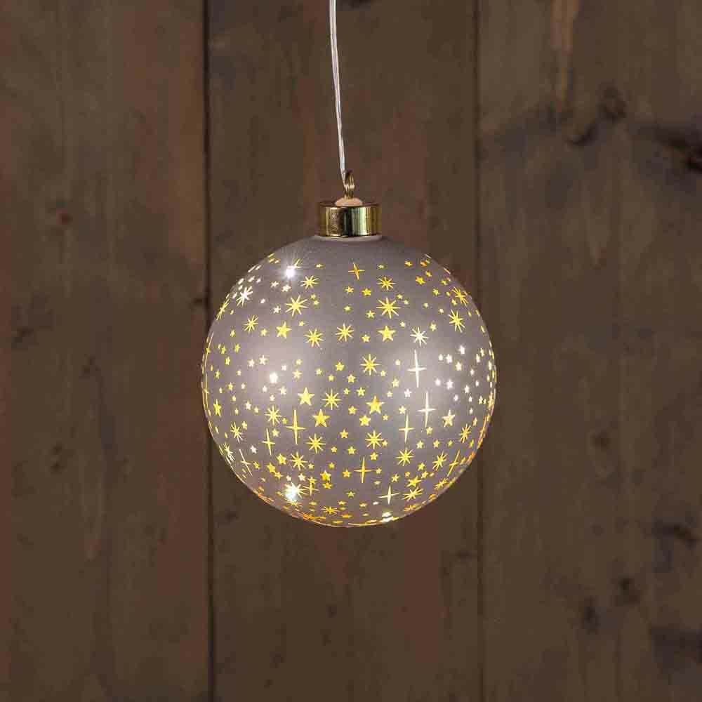 Schrijf zelf een recensie over "Glas bal mat champagne met sterren D12 LED"