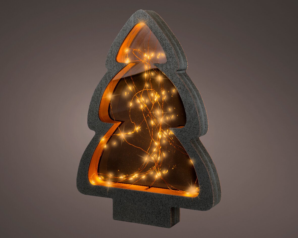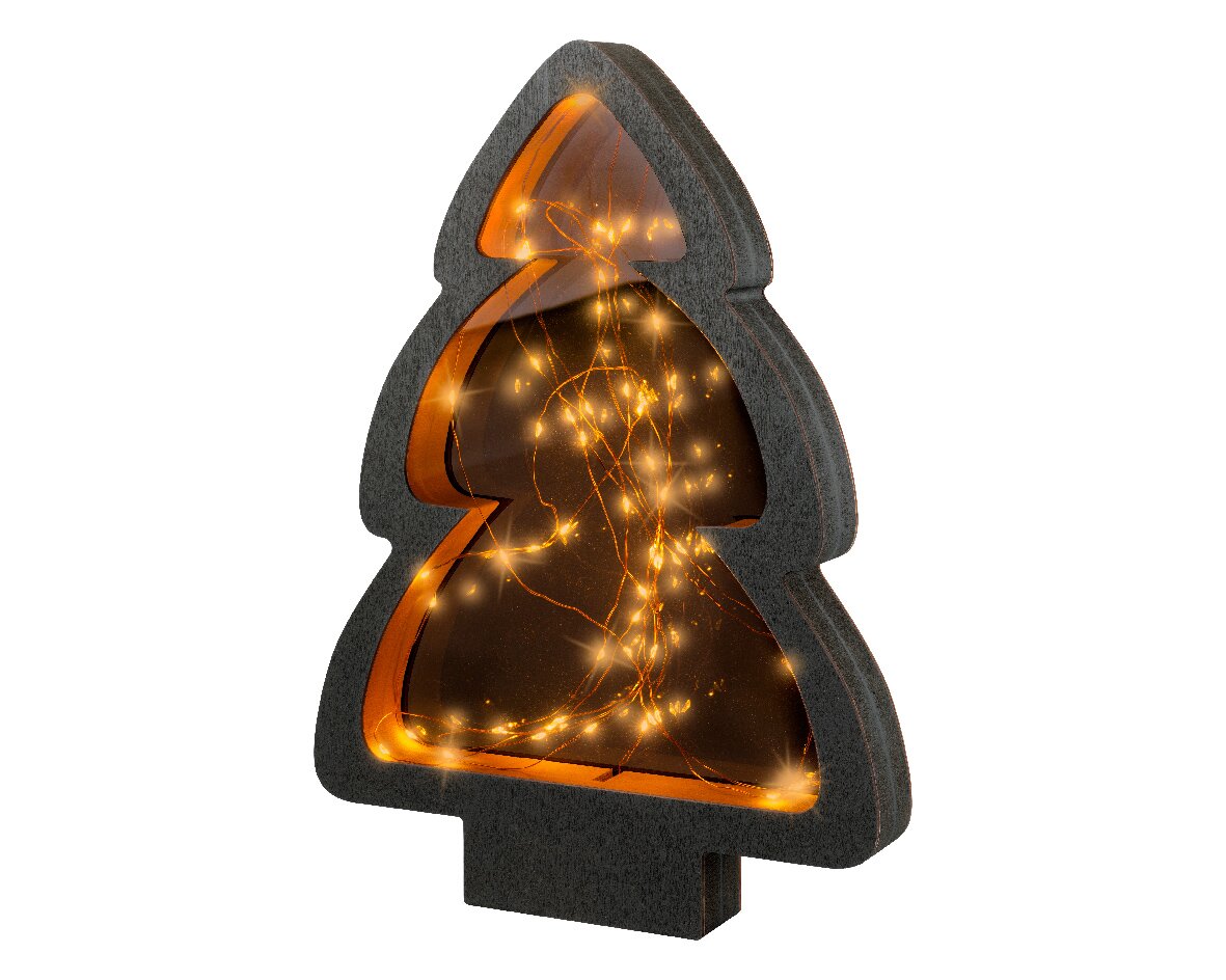 3D Kerstboom hout B27,5 H38cm zwart/klassiek warm Micro LED