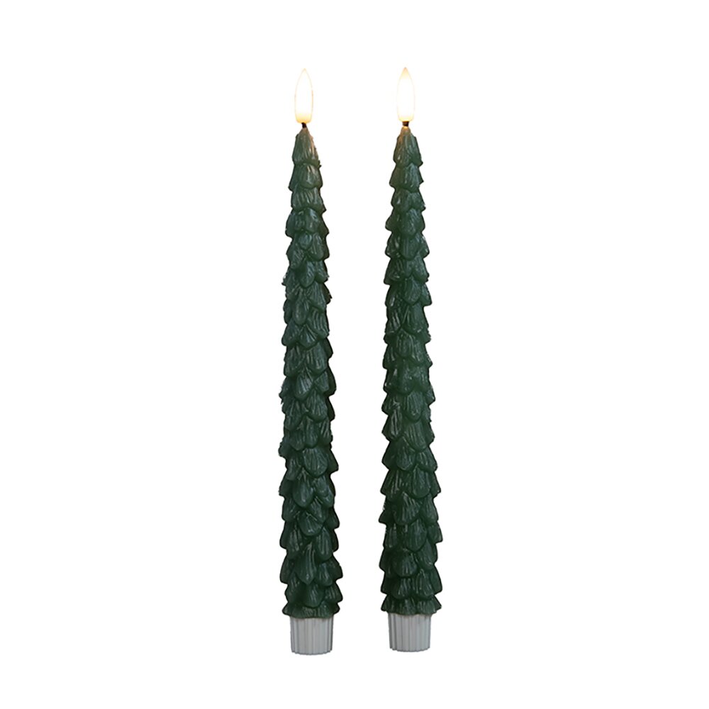 Dinerkaars Kerstboom Wax Jade Groen LED 3d Vlam Met Timer 2st.