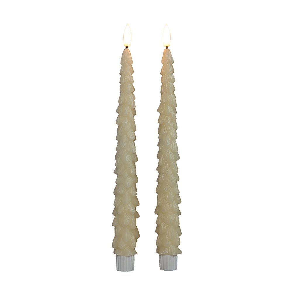 Dinerkaars Kerstboom Wax Ivoor LED 3d Vlam Met Timer 2st.