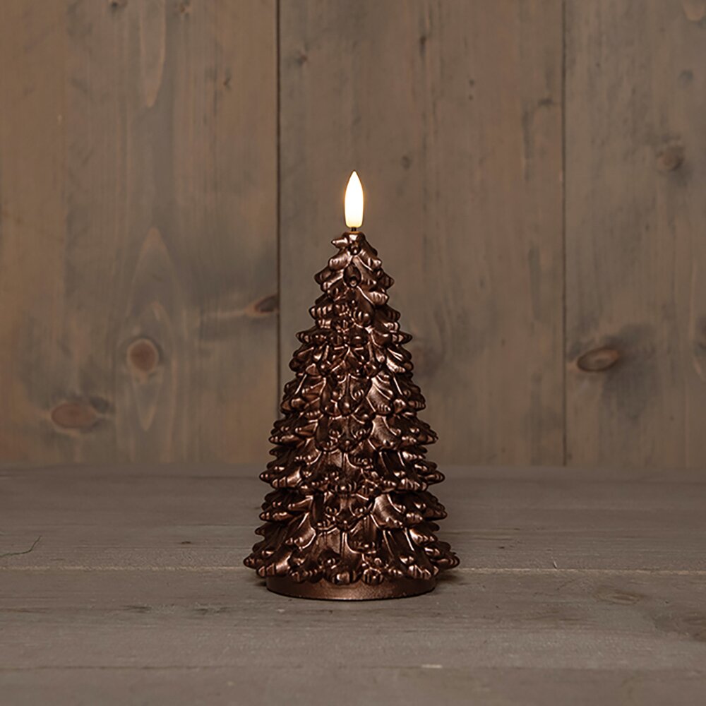 Kaars Kerstboom Wax Brons LED 3d Vlam Met Timer 20x9,5cm