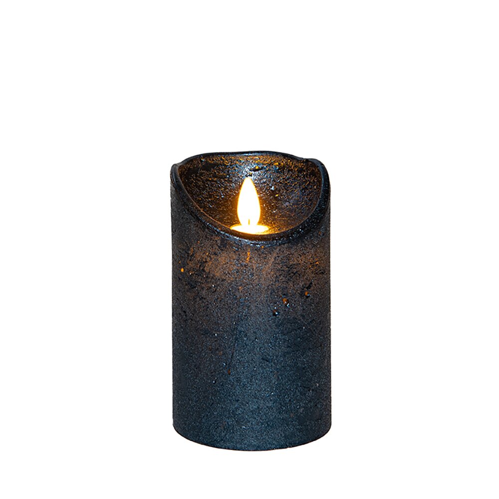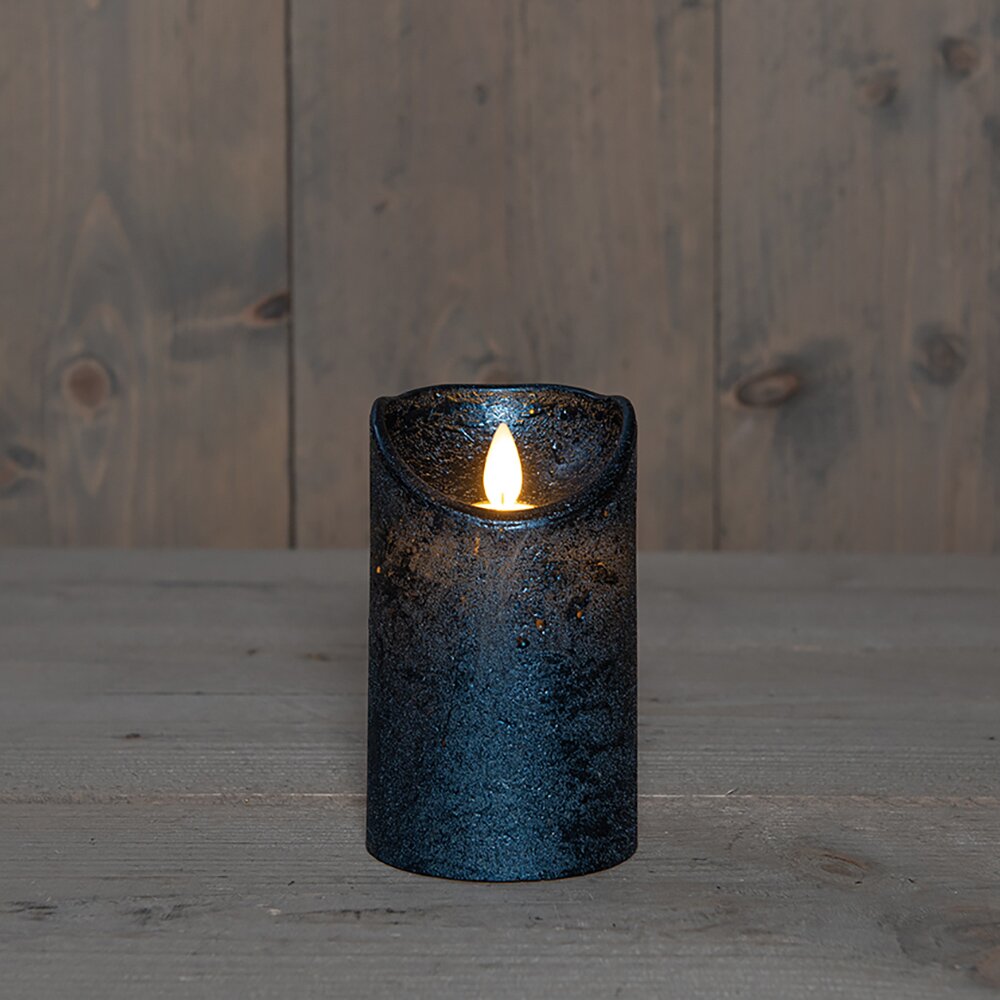 Stompkaars LED Metallic Blauw Rustiek Wax Bewegende Vlam Timer 12,5x7,5cm