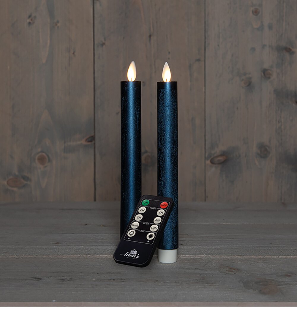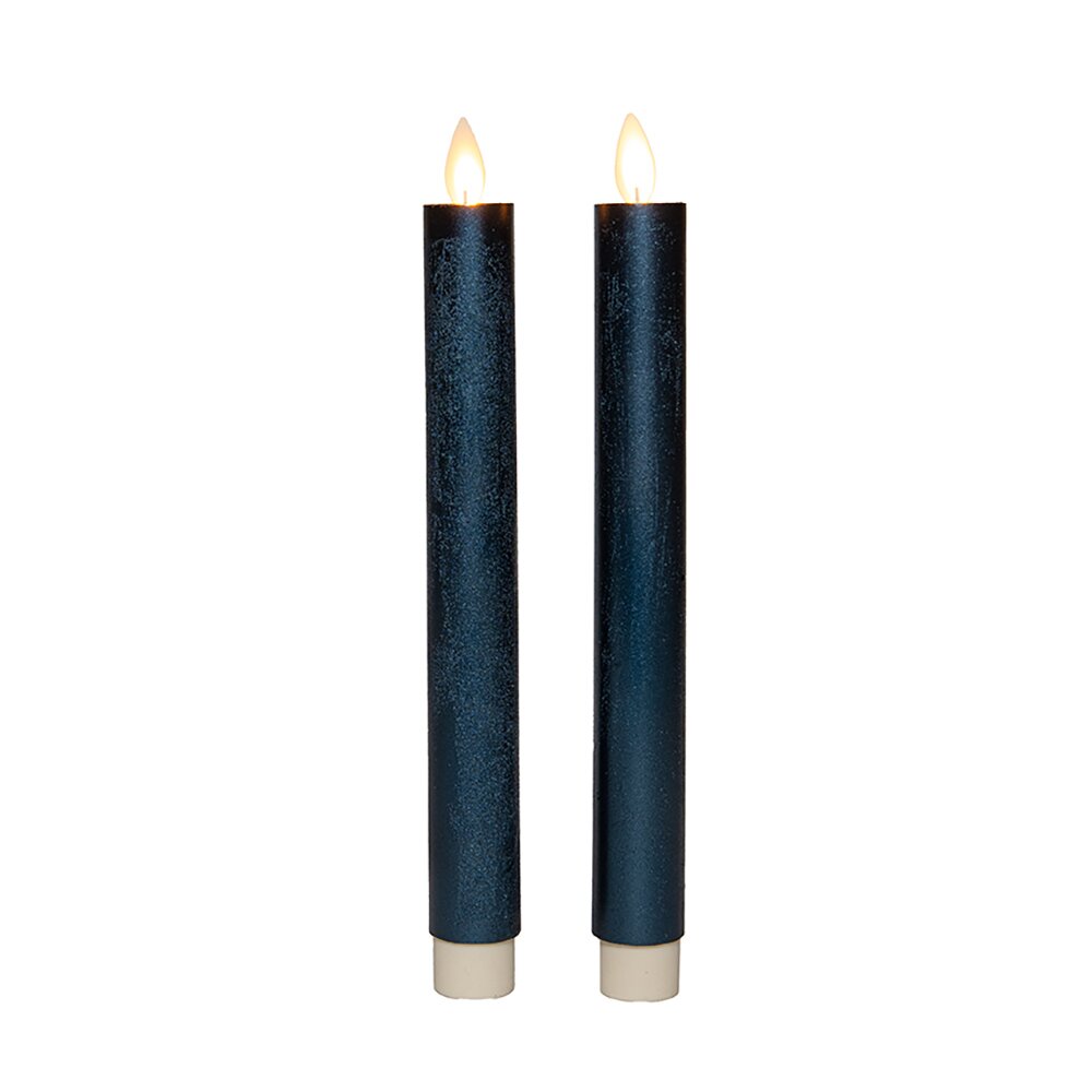 Dinerkaars LED Metallic Blauw Rustiek Wax Led Bewegende Vlam 2st. H23cm
