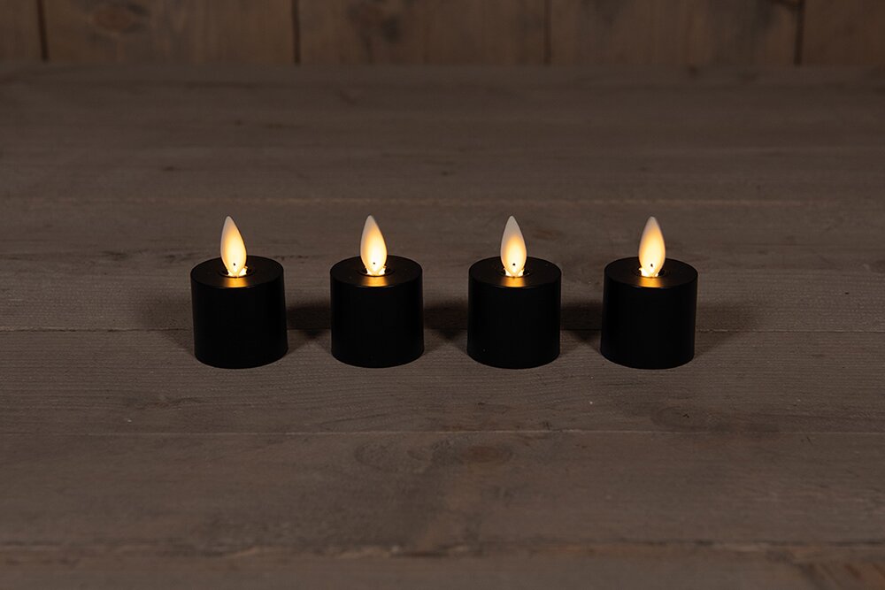 Theelicht Zwart Uitbreidingsset Bewegende Vlam 4st. ø5x6cm