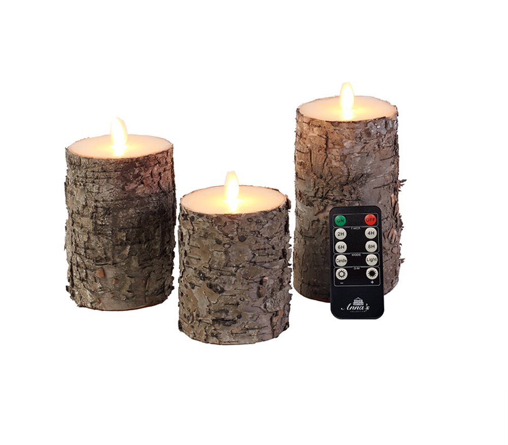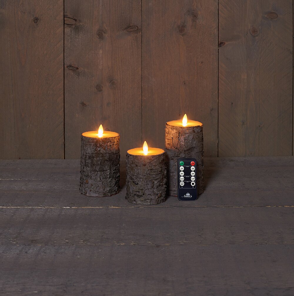 LED Kaars Donker Berk Bewegende Vlam 7,5x10/12,5/15cm