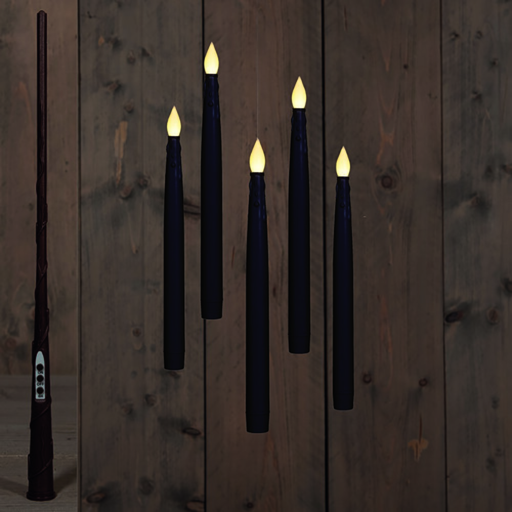Zwevende kaarsen Zwart Inclusief Toverstaf LED 5st. (H28,5cm)