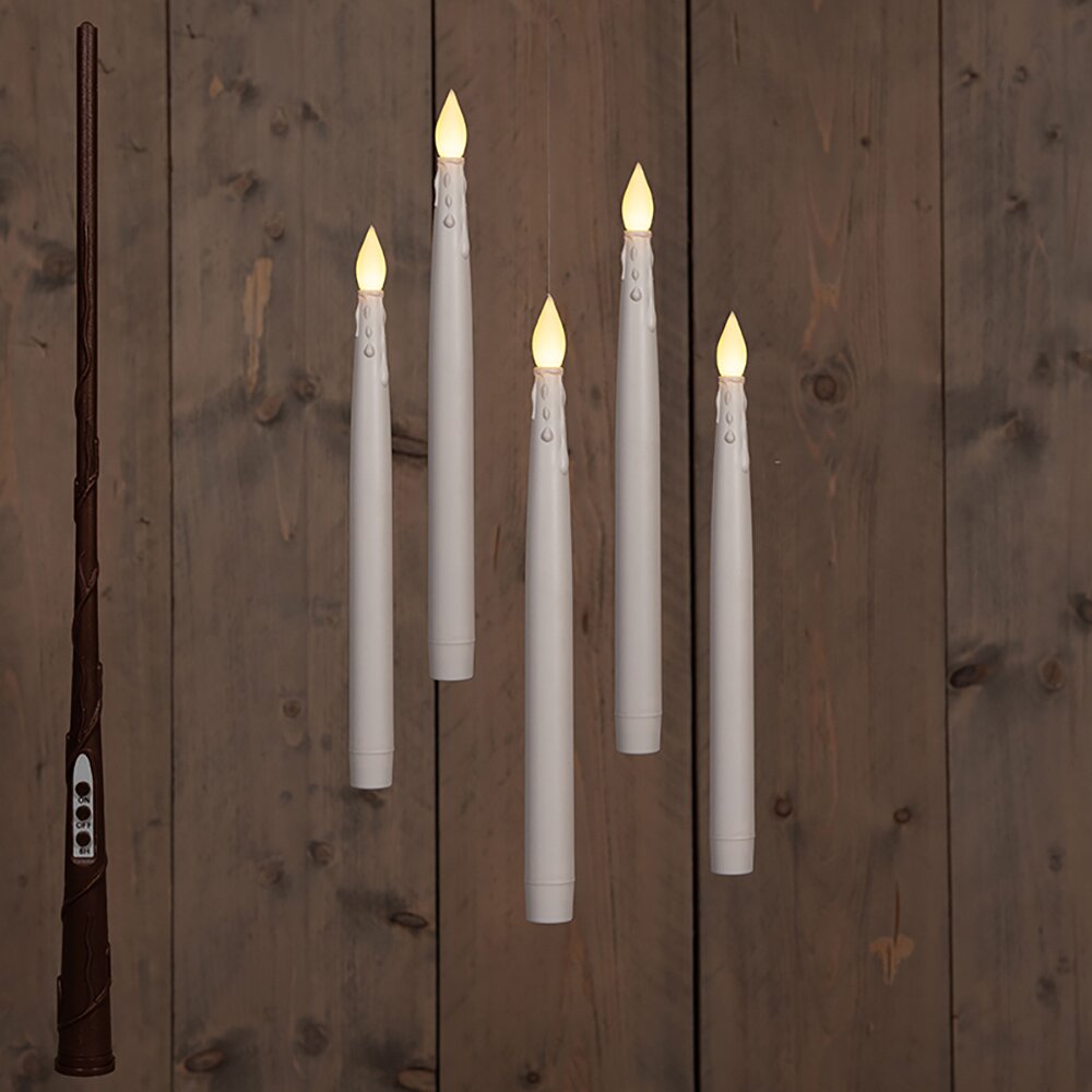Zwevende kaarsen Wit Inclusief Toverstaf LED 5st. (H27cm)