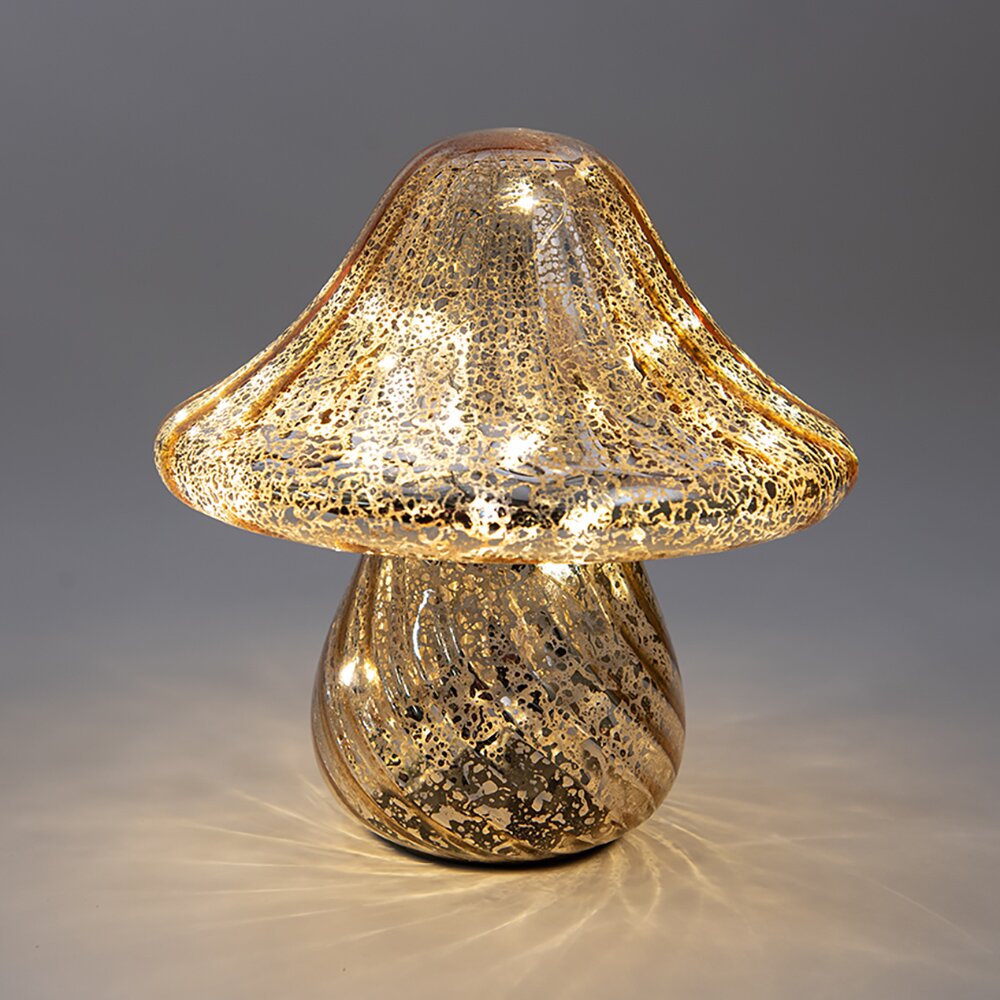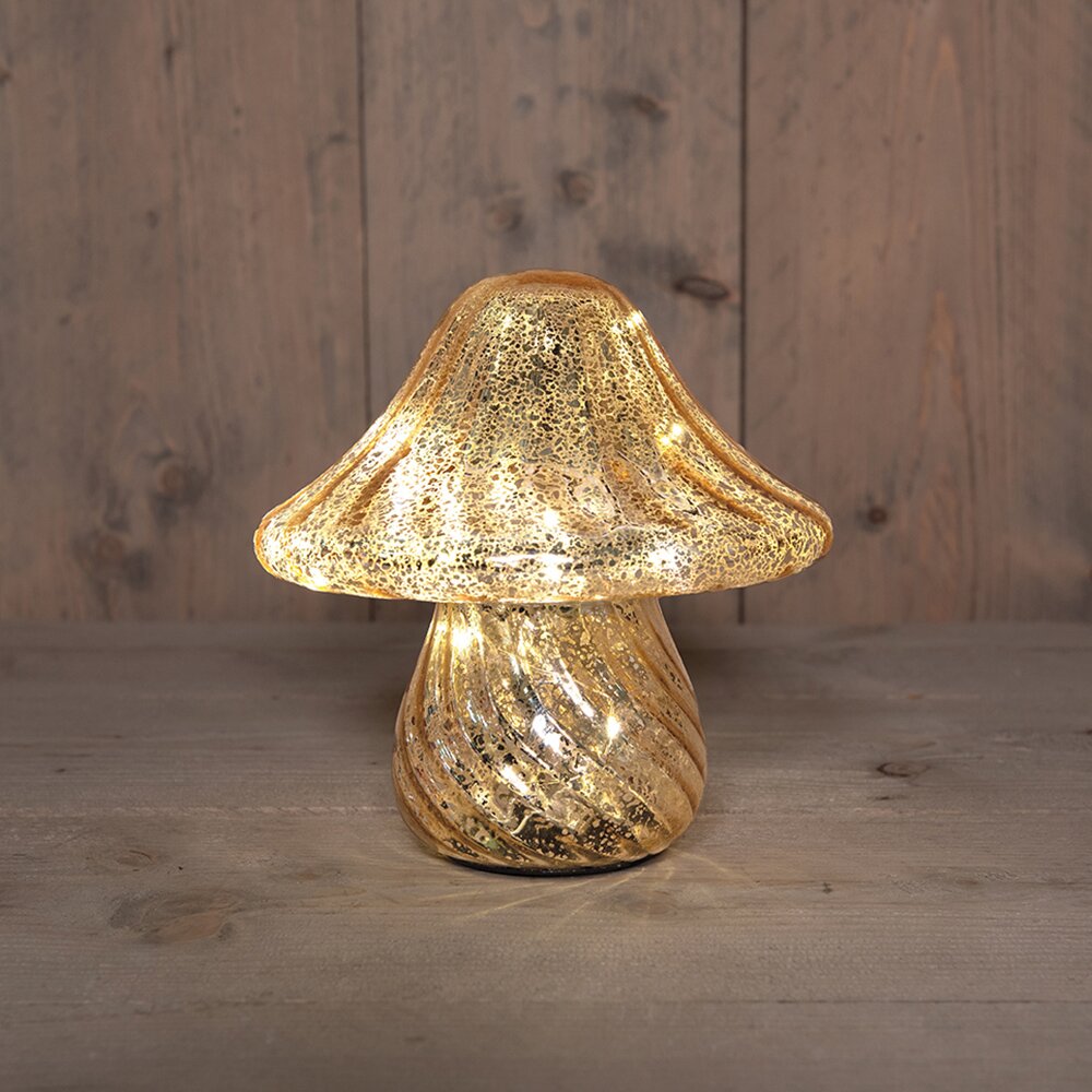 Paddenstoel glas LED 15X9.5 cm Mercury Goud