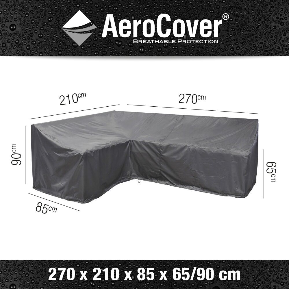 Loungesethoes voor hoeksets van AeroCover. Ademende loungesethoes voor loungeset links in L-vorm en hoge rug 270x210x85x65/90. Loungesethoes o.a. geschikt voor L-vormige hoeksets met een 90° hoek. Wanneer u in de set zit is de rechterzijde langer dan de linkerzijde. AeroCovers zijn ademend, waterbestendig, reduceren condensvorming en gaan schimmelvorming tegen. De stof heeft een hoge kleurechtheid door de door en door geverfde vezels. Een Aerocover hoes verlengt de levensduur van uw tuinmeubelen. AeroCovers zijn vervaardigd van sterk en lichtgewicht ripstop polyester. Ze zijn makkelijk hanteerbaar en nemen weinig ruimte in wanneer niet in gebruik. De afdekhoes is voorzien van rijgkoord met 2 stoppers voor een goede pasvorm. Inclusief handige opbergtas. AeroCover stoffen zijn 100% waterdicht, de naden zijn, net als elke ander hoes, spatwaterdicht.